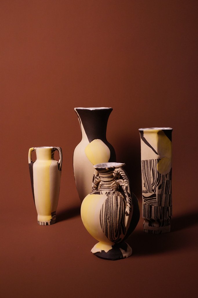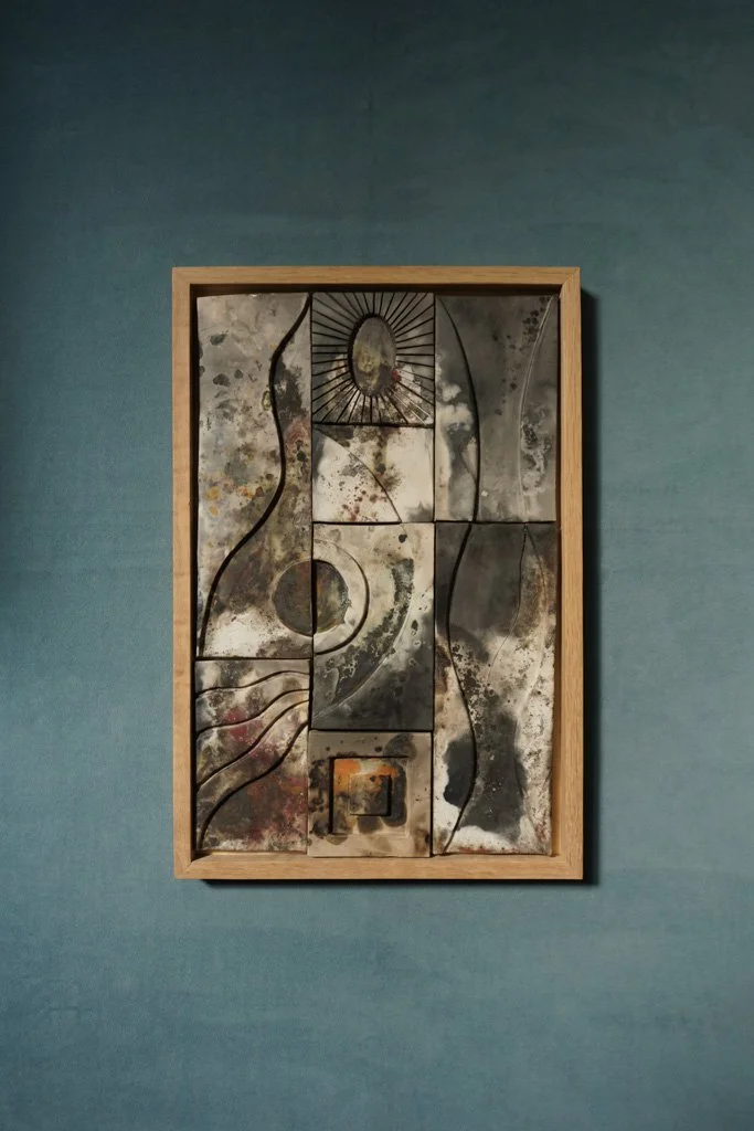 Illuminated explores light as both material and metaphor. Fire transforms these works through pit and raku techniques, leaving traces of atmosphere embedded in the surface. Tinted and mixed clay bodies continue the artist’s exploration of layered pattern and graphic contrast.