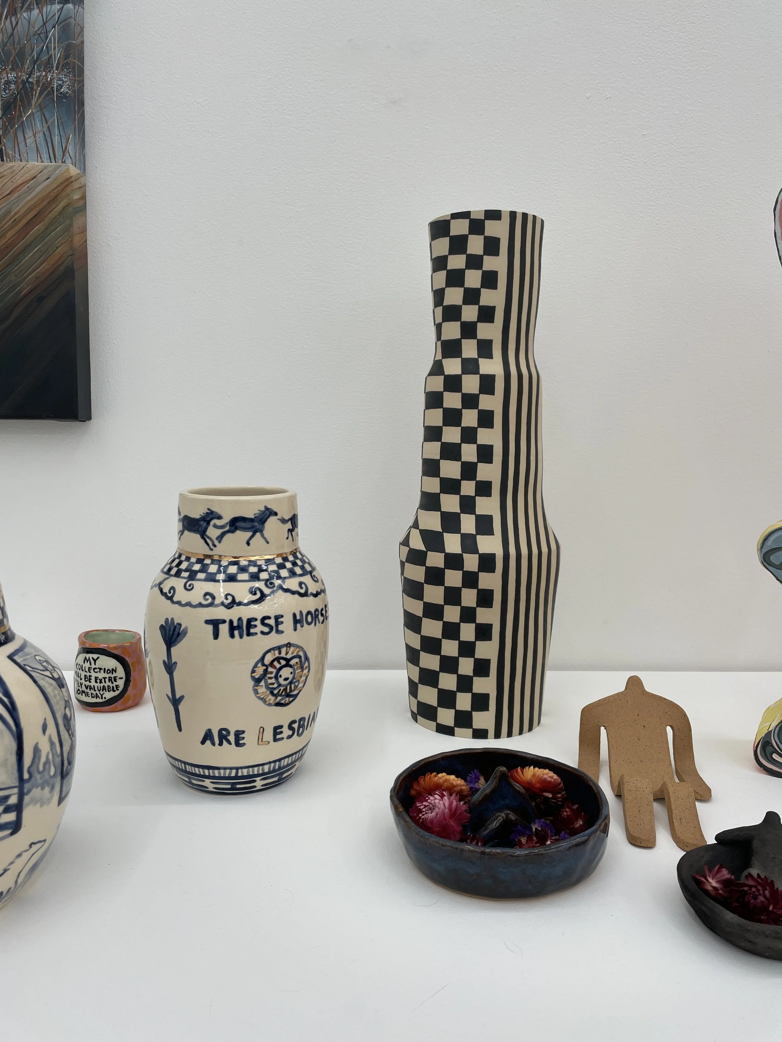 Utilizing a variety of mediums, from ceramics to oil painting to textile and wood works, each artist contemporizes the representation of the vessel.